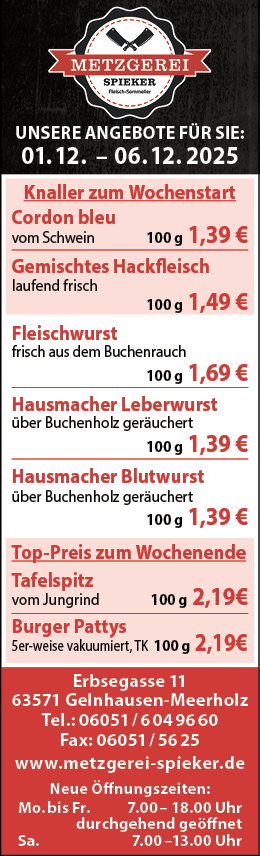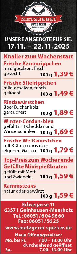 Der Metzgermeister und Fleischsommelier Christian Spieker hat seinen Traum verwirklicht und im Februar 2020 die Metzgerei Reuther in der Erbsegasse in Meerholz von Heinrich Reuther übernommen.